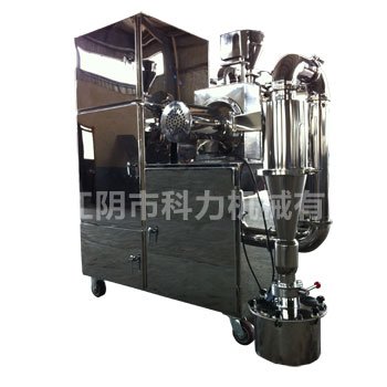 本机有主机、辅机、管道、电控箱等组成,辅机包括旋风收集器、滤袋式除尘器,主机内装有离心分级装置,除可完成粉碎外,还具有风选式分级功能,无筛无网,粉状粒度可任意调节。物料粉碎后,采用负压输送至排料筒。达到生产要求。该机是制药、食品、化工等工业粉碎物料的理想设备。